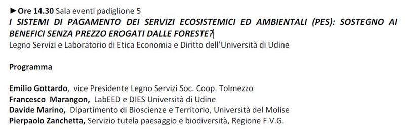 Dal 21/01 al 24/01 a Udine il si aprirà il Forum LAND, la nuova versione biennale della storica fiera Agriest alla 51^ edizione. Il mondo rurale sarà raccontato attraverso progetti, piani, prospettive, strumenti, misure che mettono direttamente e necessariamente in relazione il settore primario con il territorio, l’ambiente, i cambiamenti climatici, l’alimentazione e la qualità della vita di tutti noi. All'interno del programma molto denso, dove il PSR 2014 - 2020 del Friuli Venezia Giulia farà da tema di fondo, segnaliamo l'appuntamento di venerdì 22 alle ore 14.30 - I sistemi di pagamento dei servizi ecosistemici ed ambientali (pes): sostegno ai benefici senza prezzo erogati dalle foreste?
